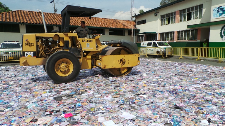 “En compañía de la Procuraduría y del subsecretaría de Espacio Público estamos destruyendo este material avaluado en 1.800 millones de pesos. Esto sin duda alguna es una mafia, porque los vendedores deben deresponder a los combos ilegales por el valor de esta mercancía, independientemente si la venden o se la decomisan” dijo el coronel Miguel Roa, subcomandante de la Policía Metropolitana.