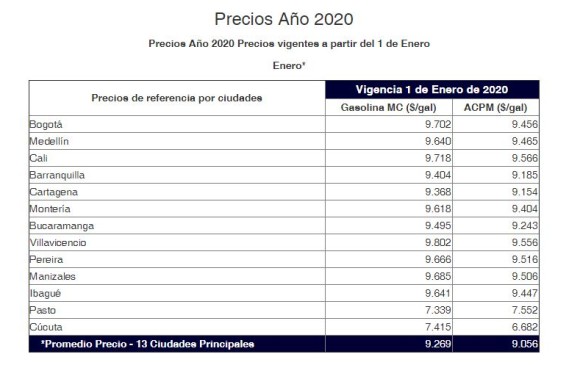 En diciembre, el precio de la gasolina se mantuvo estable, mientras que el del ACPM bajó 4 pesos.
