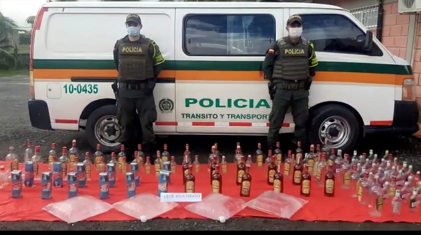 En las últimas horas la Policía de Urabá logró la incautación de una gran cantidad de licor adulterado sobre el kilómetros 5 que comunica los municipios de Chigorodó con Dabeiba. El licor adulterado estaría avaluado en más de 3 millones de pesos.