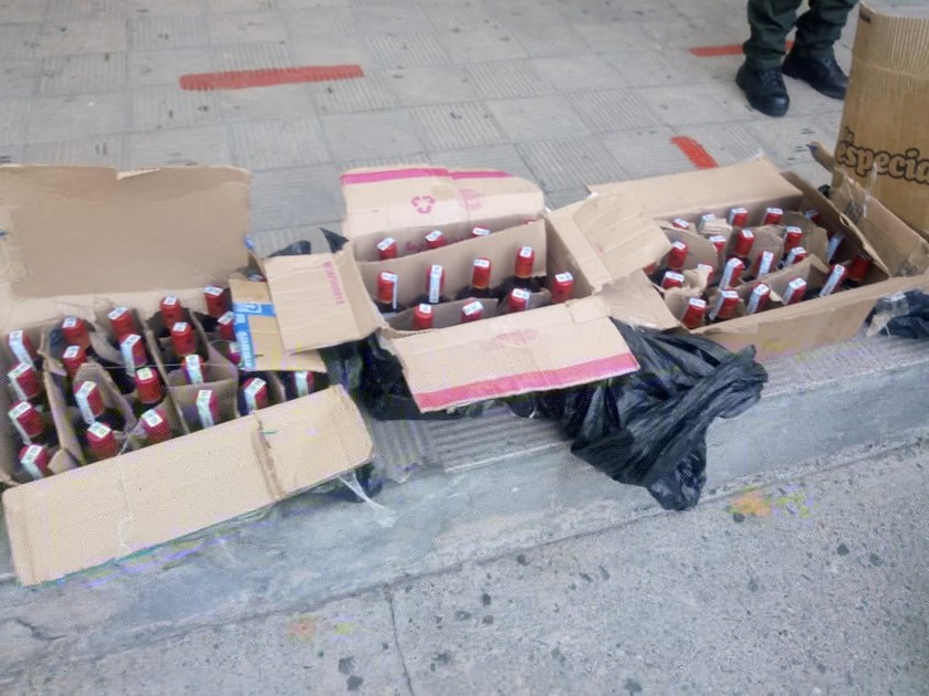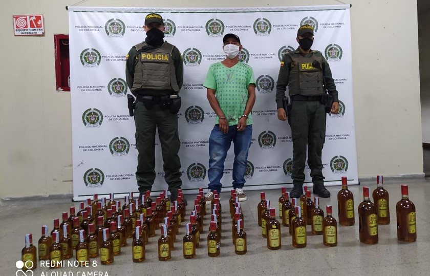 De acuerdo con las autoridades, el licor que el hombre transportaba por el barrio La Cruz era ilegal.