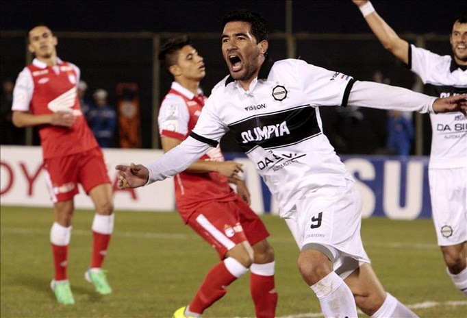 Juan Carlos Ferreyra del Olimpia de Paraguay festeja un gol contra el Independiente Santa Fé de Colombia el 2 de julio de 2013, en su partido de ida de la semifinal de la Copa Libertadores disputado en el estadio Defensores del Chaco de Asunción (Paraguay). EFE
