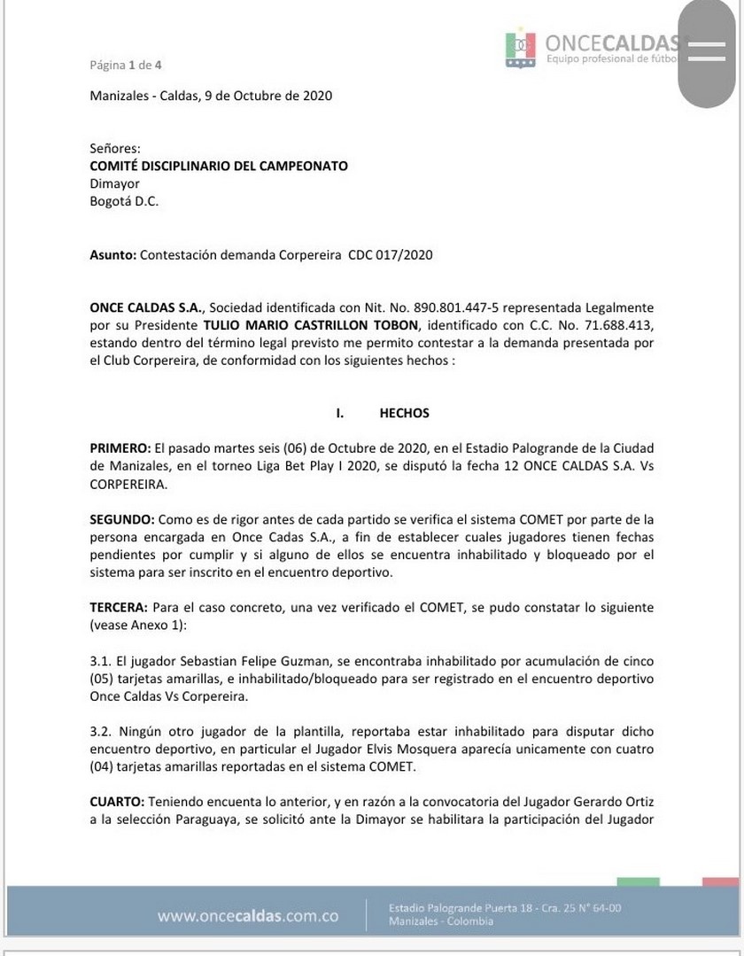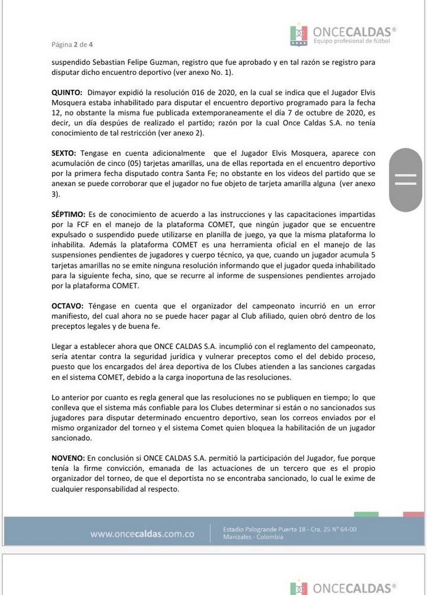 Ojo a esto: respuesta del @oncecaldas a la demanda. https://t.co/HeCM8dPni2