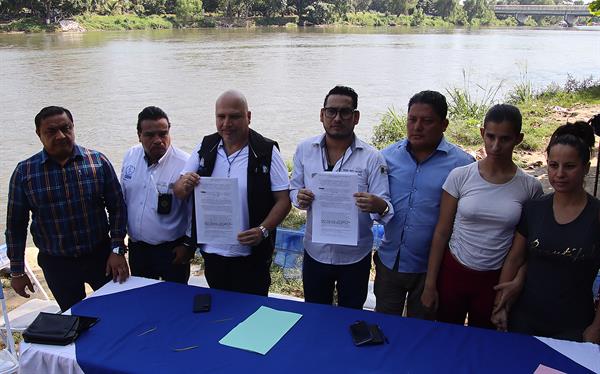 A unos metros del paso del ‘Coyote’, en el río Suchiate, frontera entre México y Guatemala, una decena de comisionados internacionales firmaron el acuerdo con el objetivo de prestar ayuda humanitaria en temas de salud, interés superior del niño y búsqueda de personas desaparecidas.