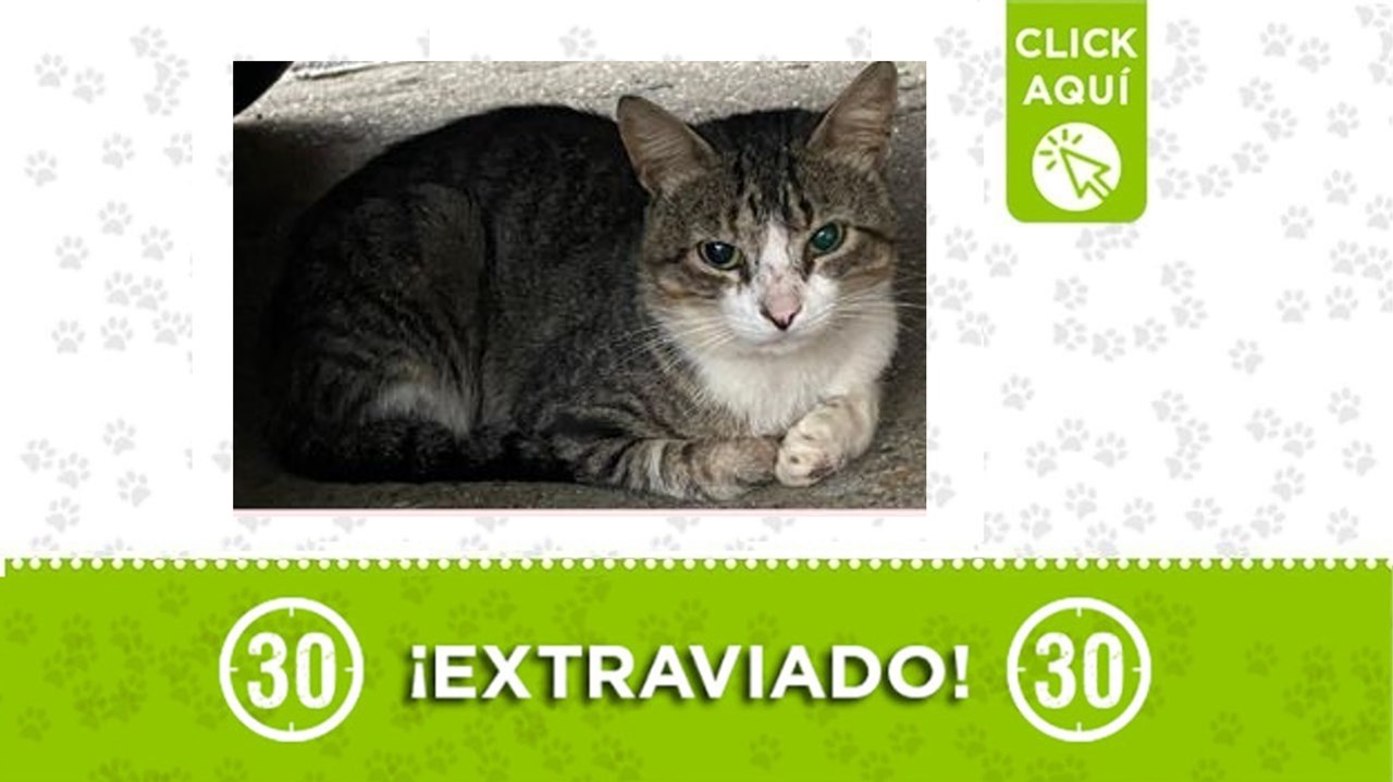 El gatico se extravió el 11 de junio a las 7 de la mañana por la calle 98 con carrera 44A, en Aranjuez.