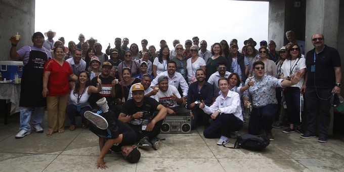 El paso por esta parte de la ciudad incluyó un recorrido por los grafitis de la comuna y una muestra hip hop.