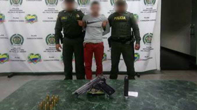 Mediante operativos conjuntos entre la Secretaría de Gobierno, La Policía Nacional y la Secretaría de Movilidad, fue capturado un sujeto en el sector San Fernando, quien tenía en su poder una pistola Prieto Beretta calibre 9mm y 15 cartuchos para la misma.
