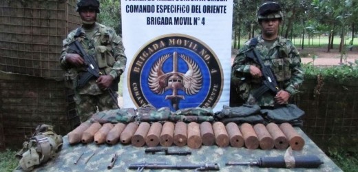 Adicionalmente, en área general de los ríos Guayabero y Ariari, unidades de la Brigada Móvil N° 4 y del Batallón Fluvial de Infantería de Marina N° 32 ubicaron un escondite clandestino con más de 300 kilos de explosivos con los que, de acuerdo con el Ejército, el frente 7 de las Farc pretendía construir más de 1.200 minas antipersona.