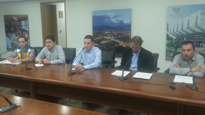 En el Salón Consejo de Gobierno se reunieron la tarde de este sábado el Alcalde de Medellín, el Ministro de Vivienda, el Superintendente de Industria y Comercio, representantes del Isvimed, el director del Dagrd, la Secretaría de Gobierno, la Secretaría General y la Secretaría Privada, quienes analizaron el tema del edificio Colores de calasania y ordenaron la obligatoria evacuación en Colores de Calasania, según informó Pablo Robledo, superintendente de industria y comercio; quien en compañía del Ministro de Vivienda, Luis Felipe Henao viajaron desde Bogotá para la reunión.