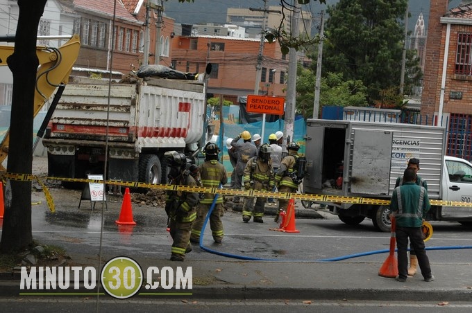 Minuto30.com-. Una retroexcavadora que se encontraba realizando trabajos de perforación en la avenida 28 con carrera 33C sector de Teusaquillo, para adecuar conductos del agua, accidentalmente rompió un tubo madre de gas produciéndose un gran escape de este fluido en el sector.