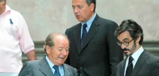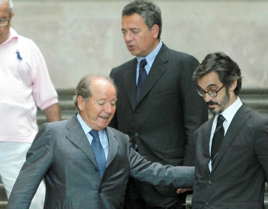 El expresidente del FC. Barcelona, José Luis Núñez Clemente (i), acompañado de su hijo Jose Lluis Nuñez Navarro (c)