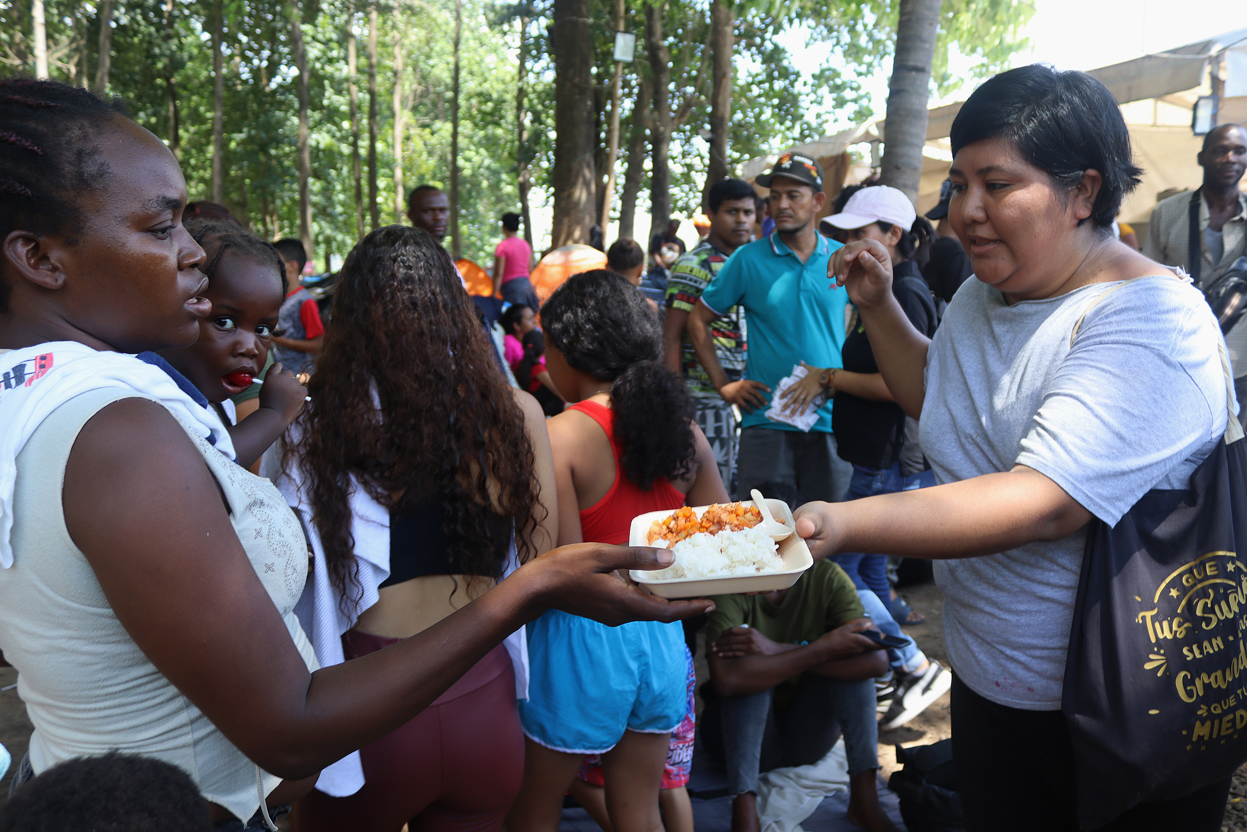 La representante explicó que en el campamento ubicado en la comunidad Viva México se entregaron 350 platos de comida para migrantes venezolanos, colombianos, haitianos, africanos y de otros países.