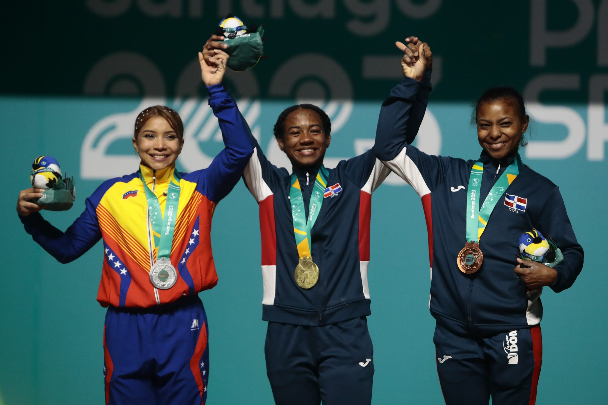 La venezolana Katherin Echandia obtuvo la plata con un total de 189 kilos (84-105), en tanto que Pirón finalizó tercera con un registro total de 181 kilos, 84 de arranque y 97 de envión.