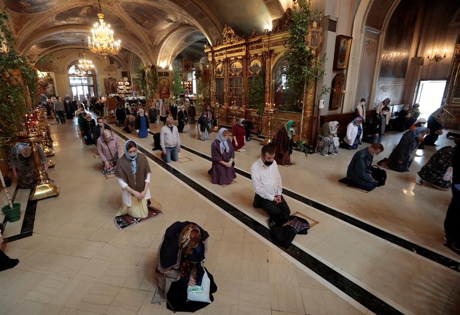 Los creyentes ortodoxos rusos celebran hoy el Día de la Santa Trinidad en medio de las medidas restrictivas dictadas por las autoridades sanitarias para contener la epidemia de COVID-19, que se ha cobrado ya casi 6.000 vidas en todo el país.