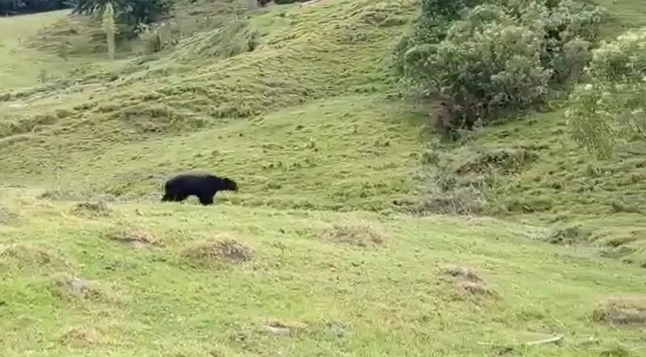 Mientras que la persona estaba grabando y llamando al animal, el oso seguía su camino. Corriendo en el pasto se perdió en el monte del occidente de Antioquia.