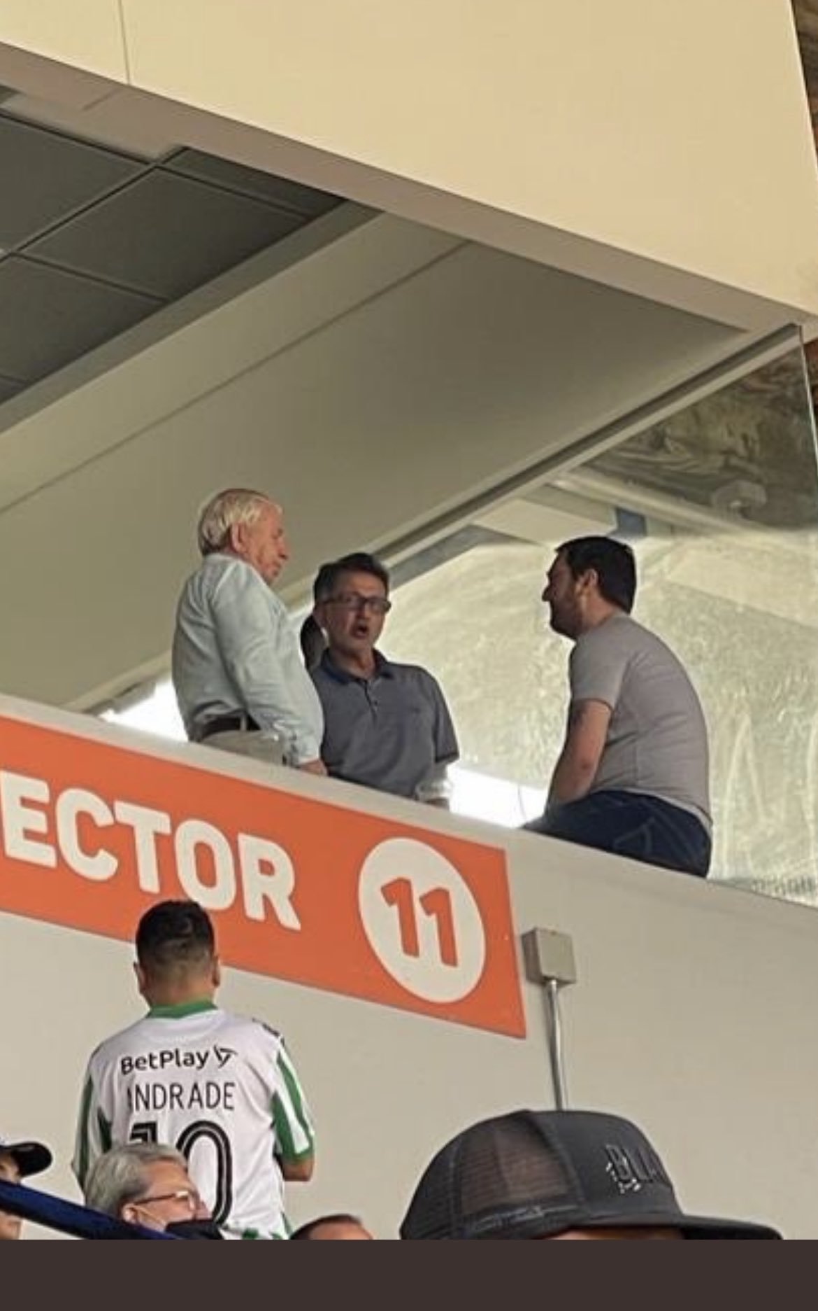 El estratega con pasado en la institución paisa fue visto en los parqueaderos de la unidad deportiva junto a otro referente en la historia del club, Alexis Henríquez, a quienes les cantaron, ovacionaron y pidieron fotos a pesar de la grandes vallas de seguridad.
