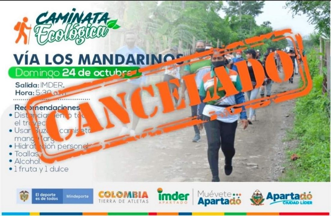 Sin embargo, dos eventos deportivos que se tenían previstos para este fin de semana fueron cancelados, uno de ellos, una caminata organizada por la Alcaldía de Apartadó a zona rural del municipio, al igual que la final de voleibol en el municipio de San Pedro de Urabá.