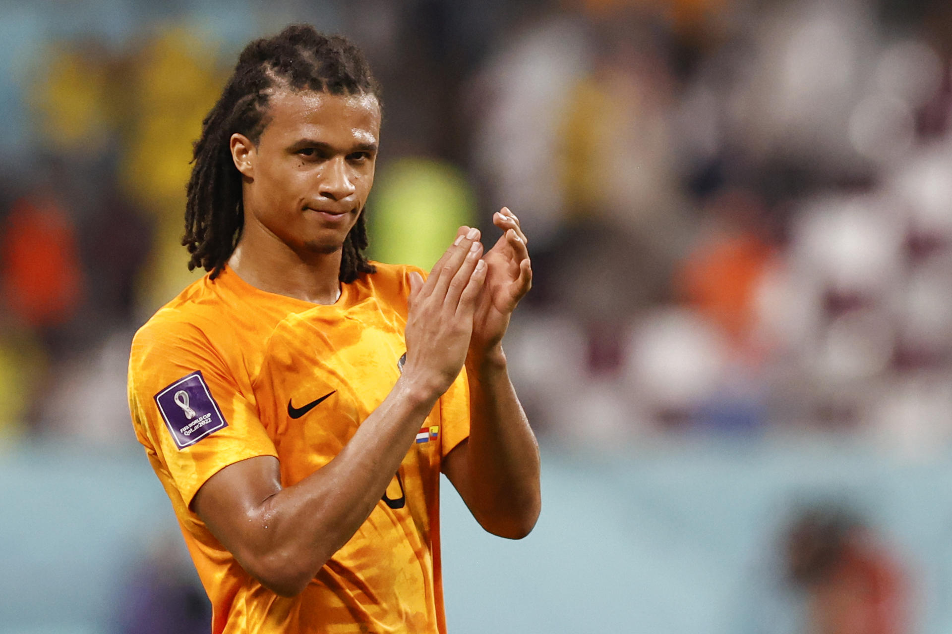 GR5008. DOHA (CATAR), 25/11/2022.- Nathan Ake de Países Bajos reacciona hoy, en un partido de la fase de grupos del Mundial de Fútbol Qatar 2022 entre Países Bajos y Ecuador en el estadio Internacional Jalifa en Doha (Catar). EFE/ Esteban Biba