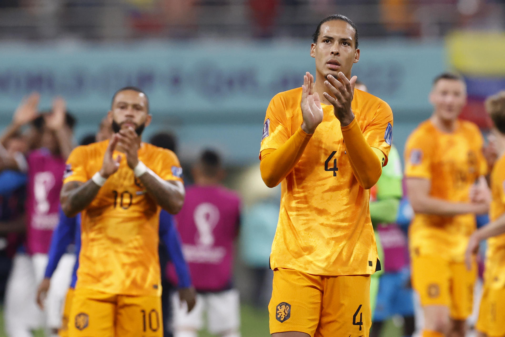 GR5008. DOHA (CATAR), 25/11/2022.- Jugadores de Países Bajos saludan a la tribuna hoy, en un partido de la fase de grupos del Mundial de Fútbol Qatar 2022 entre Países Bajos y Ecuador en el estadio Internacional Jalifa en Doha (Catar). EFE/ Esteban Biba