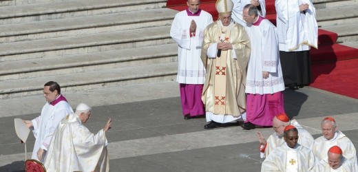 “Contemplando a este gran papa, a este cristiano comprometido, a este apóstol incansable, ante Dios hoy no podemos más que decir una palabra tan sencilla como sincera e importante: Gracias”, continuó Francisco.