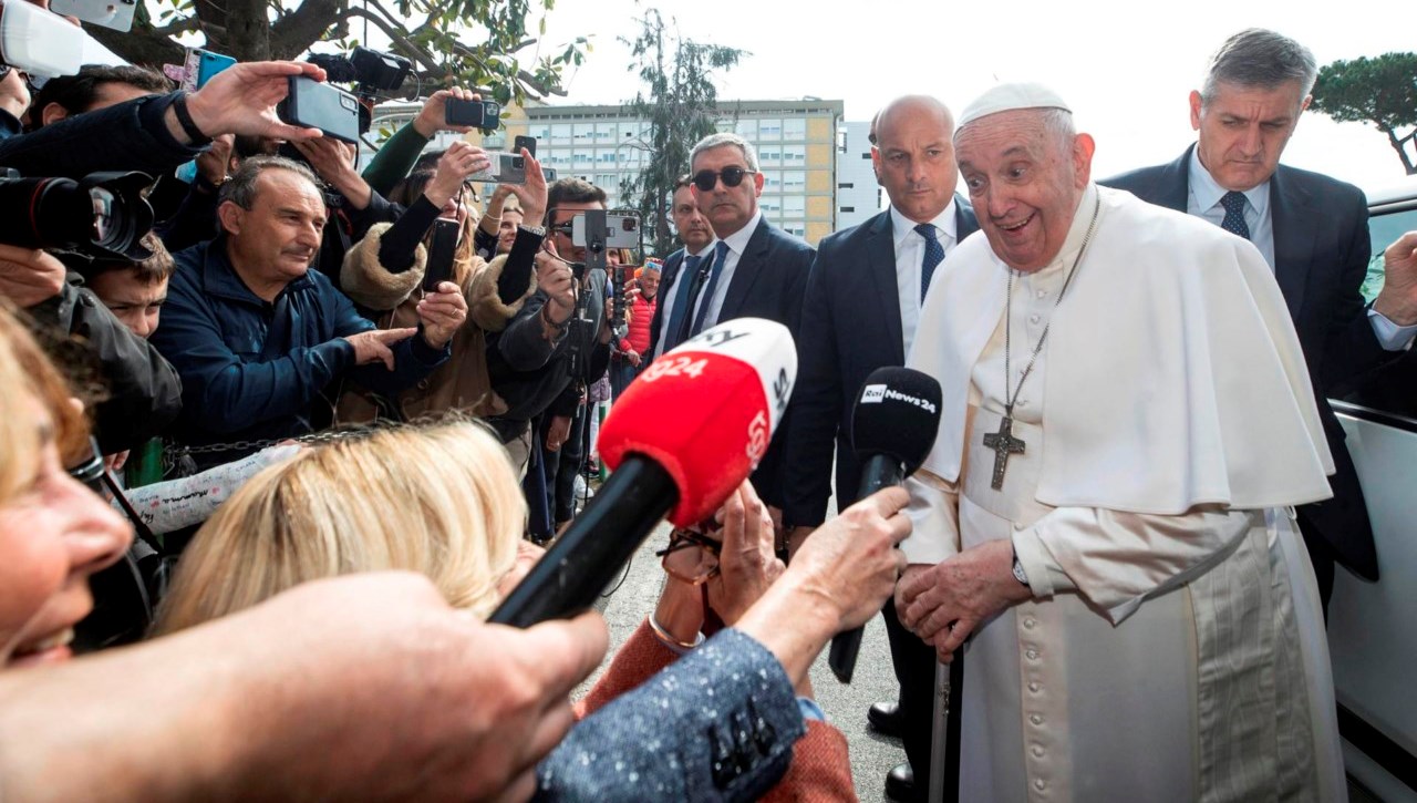 Tras recibir el alta, el pontífice argentino abandonó el hospital a las 10:20 horas locales (08.20 GMT) a bordo de un utilitario y, a su salida, llegó a bajar al coche ayudado por un bastón, para saludar a los fieles y agradecer a los periodistas que han informado sobre su salud.
