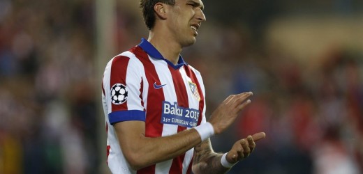 El delantero croata del Atlético de Madrid Mario Mandzukic se lamenta durante el partido de ida de cuartos de final de Liga de Campeones que Atlético de Madrid y Real Madrid disputaron este martes en el estadio Vicente Calderón. EFE