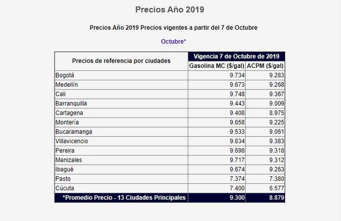 En las últimas horas el Ministerio de Minas y Energía dio a conocer la fijación de precios de la gasolina motor corriente y del ACPM para el mes de octubre.