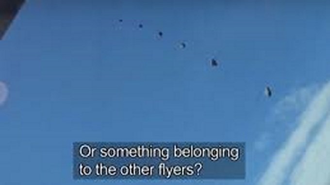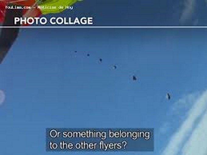 Las imágenes del episodio, captadas por una cámara colocada en el casco, muestran cómo una piedra de gran tamaño pasa a gran velocidad muy cerca de Anders Helstrup, cuando éste acababa de abrir su paracaídas.