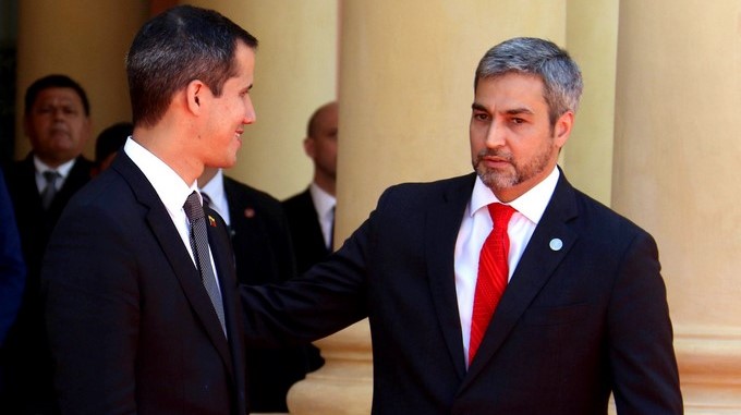 El presidente de Paraguay, Mario Abdo Benítez, anunció este viernes que los pasaportes venezolanos vencidos tendrán validez en territorio paraguayo, según publicó en sus redes sociales el mismo día en el que recibió al jefe del Parlamento de Venezuela, Juan Guaidó, quien se proclamó presidente interino.