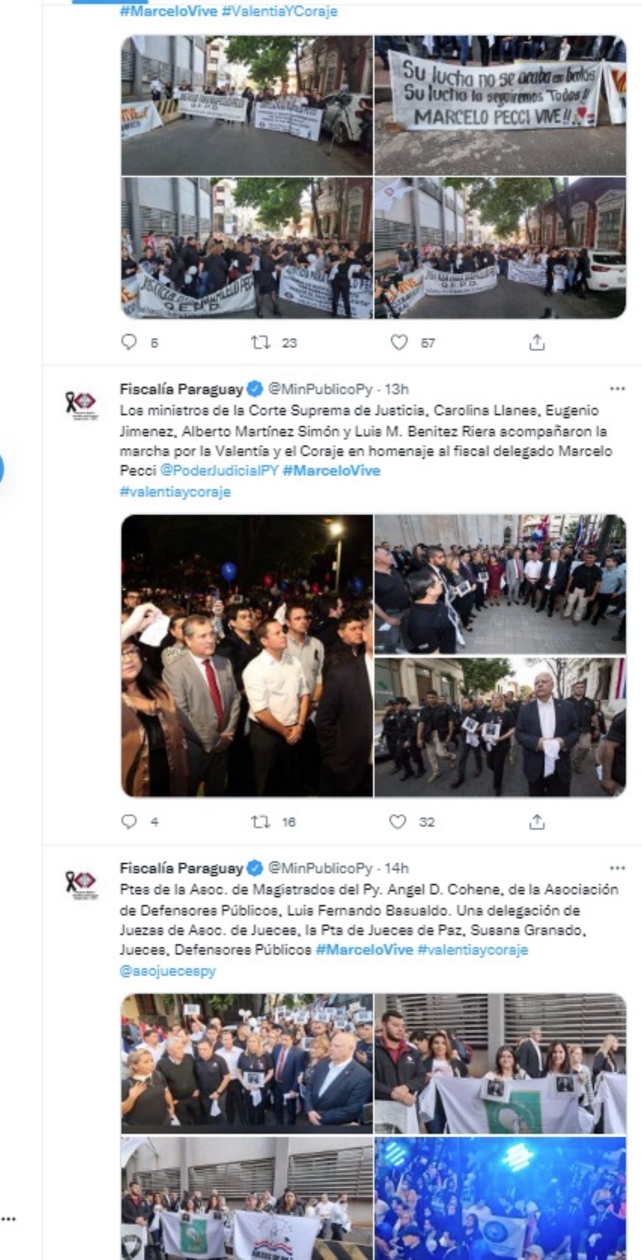 En redes sociales han compartido fotos y videos que dejan ver la movilización en honor del fiscal asesinado Marcelo Pecci, que fue asesinado en Cartagena el pasado martes.
