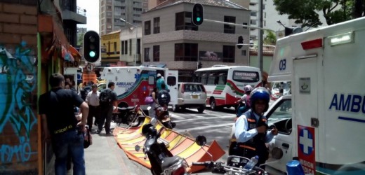 Minuto30.com-. Por heridas leves, el personal del sistema de emergencias de Medellín atendió a tres personas a las que les cayó el parasol de una panadería cuando, en sus motos, se movilizaban por el parque de El Periodista.