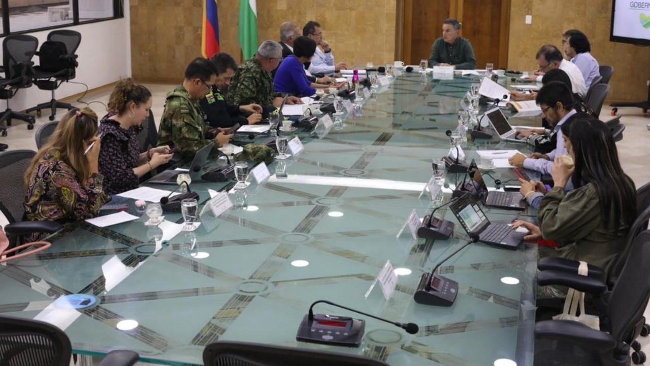 Con la presencia de los ministros del Interior, Alfonso Prada; de la Defensa Nacional, Iván Velásquez; de Ambiente, Susana Muhamad; del comandante general de las Fuerzas Militares, general Elder Giraldo, y del director nacional de la Policía, general Henry Sanabria, así como del gobernador de Antioquia, Aníbal Gaviria Correa, y su equipo de Gobierno, se desarrolló una Mesa Ministerial que analiza la situación de paro minero que se presenta en las subregiones del Bajo Cauca y del Nordeste, con miras a encontrar una salida a la situación, que ya completa una semana.