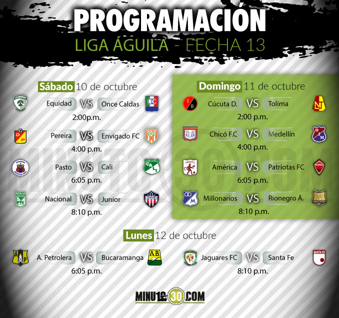 Minuto30.com-  Con cuatro partidos se abrirá este sábado la fecha 13 de la Liga BetPlay I-2020, que se torna definitiva para los equipos que quieren avanzar a la siguiente fase del campeonato. El encuentro entre Atlético Nacional y Atlético Junior, que se medirán a partir de las 8:10 de la noche en el Estadio Atanasio Girardot, […]
