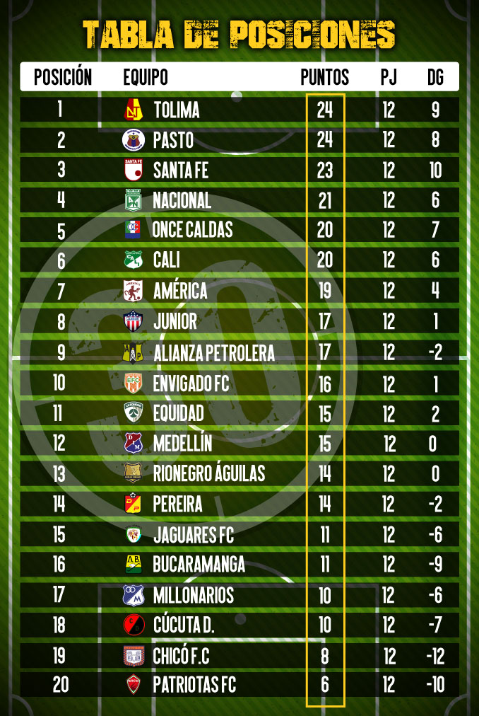 Por su parte, Deportes Tolima, que tiene 24 puntos, defenderá el liderato en su visita a Cúcuta Deportivo, el el domingo (2:00 p.m.).