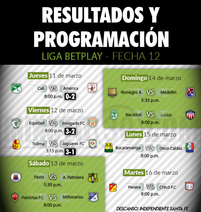 Minuto30.com- Los partidos de los equipos de Antioquia se avizoran como los más llamativos de la programación del fin de semana, en la fecha 12 de la Liga BetPlay I-2021.