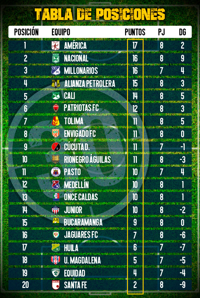 La puja por el liderato de la tabla de posiciones es un incentivo para este compromiso, en el que se encontrarán dos de los equipos con mayor regularidad en este campeonato. El ‘Verde’ se ubica segundo en la tabla de posiciones, con 16 puntos, igual puntaje que el ‘Albiazul’, que lo escolta en el tercer lugar.