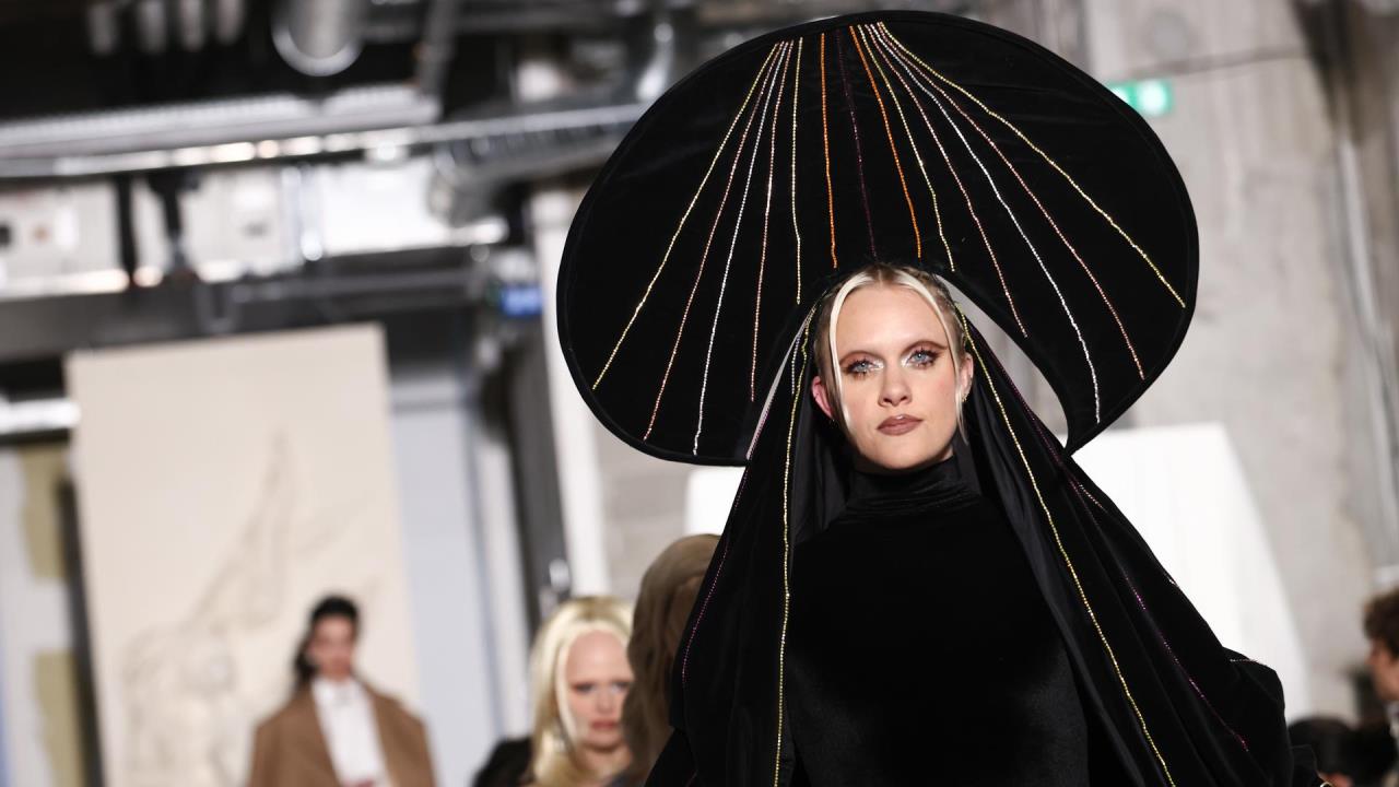 La firma del francés Victor Weinsanto apostó por exageradas proporciones, tan desmesuradas que las modelos debían entrar de lado para atravesar la puerta y poder desfilar.
