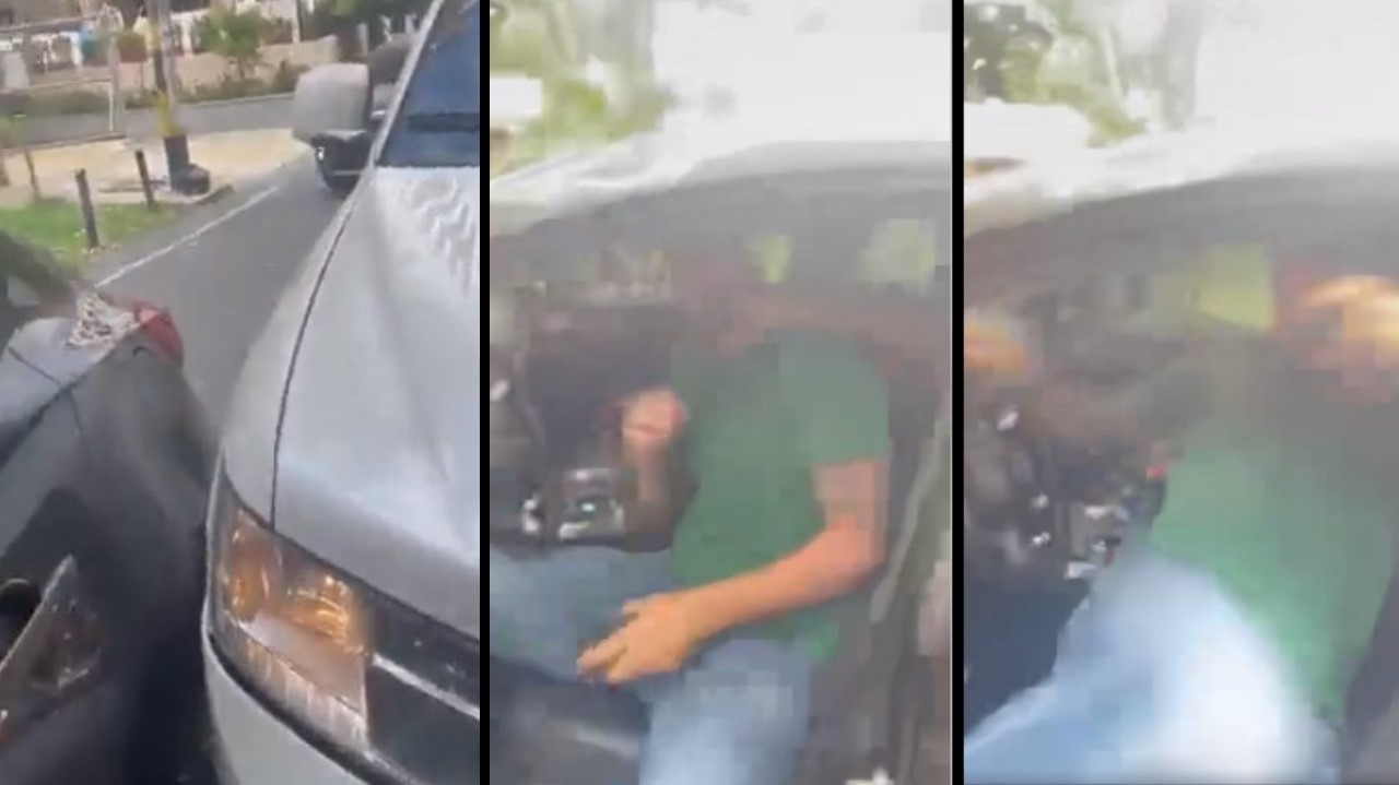 De acuerdo con el video, los carros se alcanzaron a tocar por lo que empezó la discusión entre los conductores.