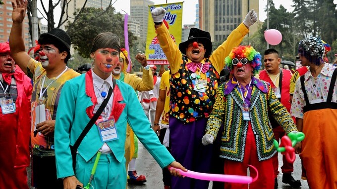 El gremio de payasos de Colombia se manifestó hoy en Bogotá para reclamar al Gobierno por las pocas ayudas que reciben y protestar contra los impuestos que, según afirma, ponen en riesgo la subsistencia de la actividad circense.