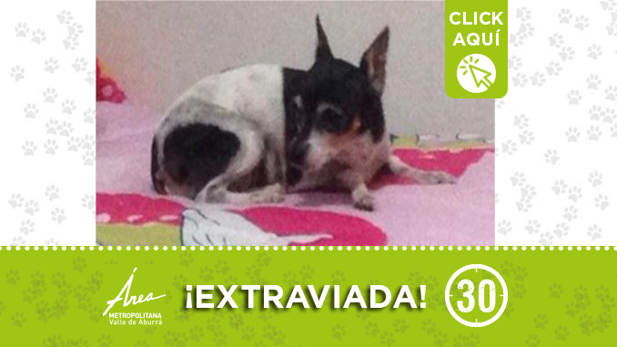 Este perrita se extravió en el municipio de Bello, sector Villas de Comfenalco.