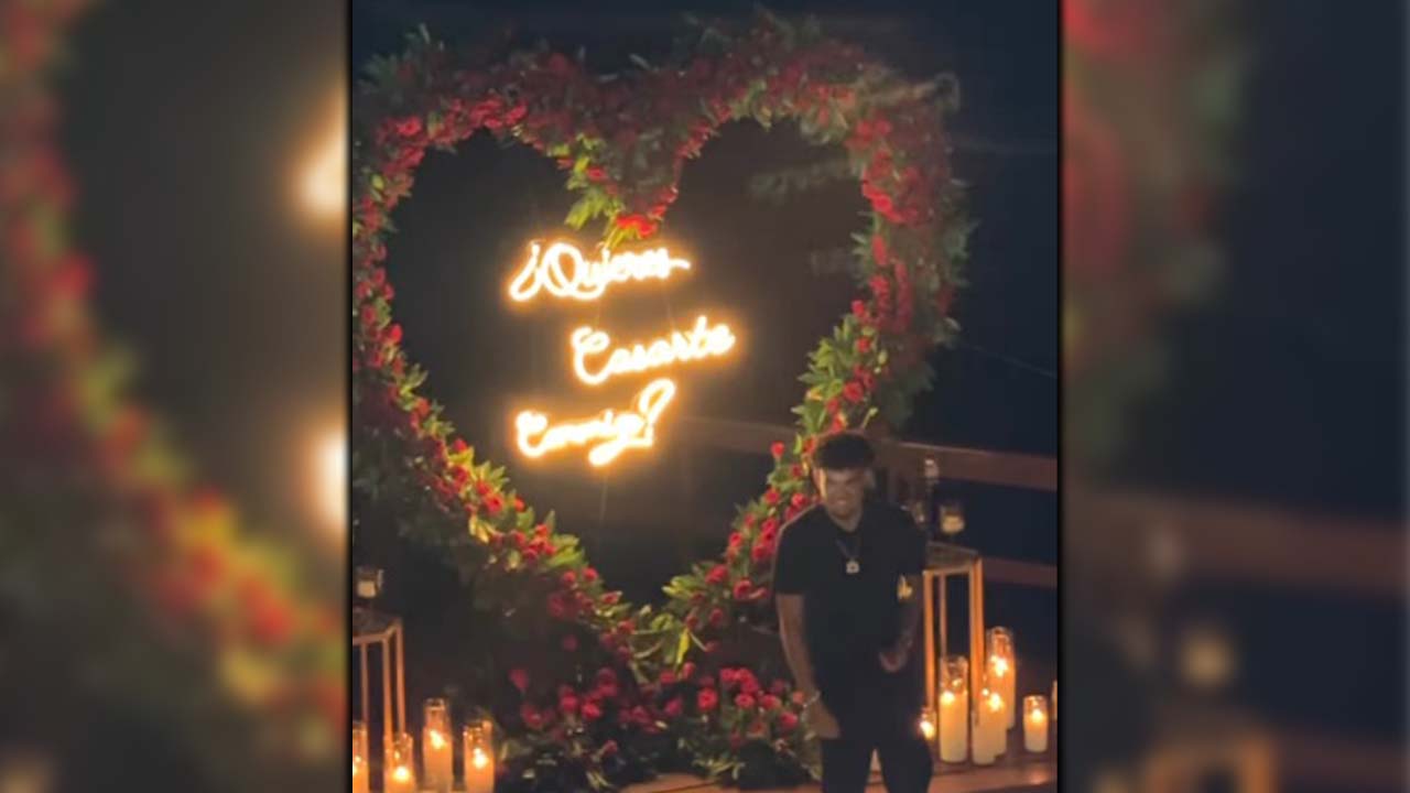 Geraldine fue llevada hasta un lugar especial que estaba decorada con flores que formaban un corazón, allí estaba Luis Díaz esperándola arrodillado con el anillo en la mano.