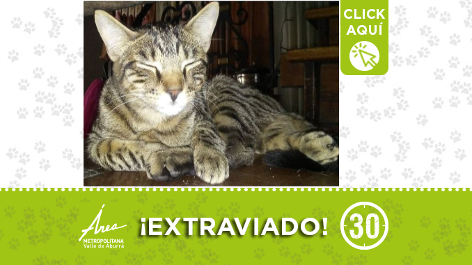 Según indicaron, el gato se perdió cerca de los banquetes Los Colores, en la carrera 72 con calle 52. Se sabe también que al momento de desaparecer portaba consigo una pañoleta azul.