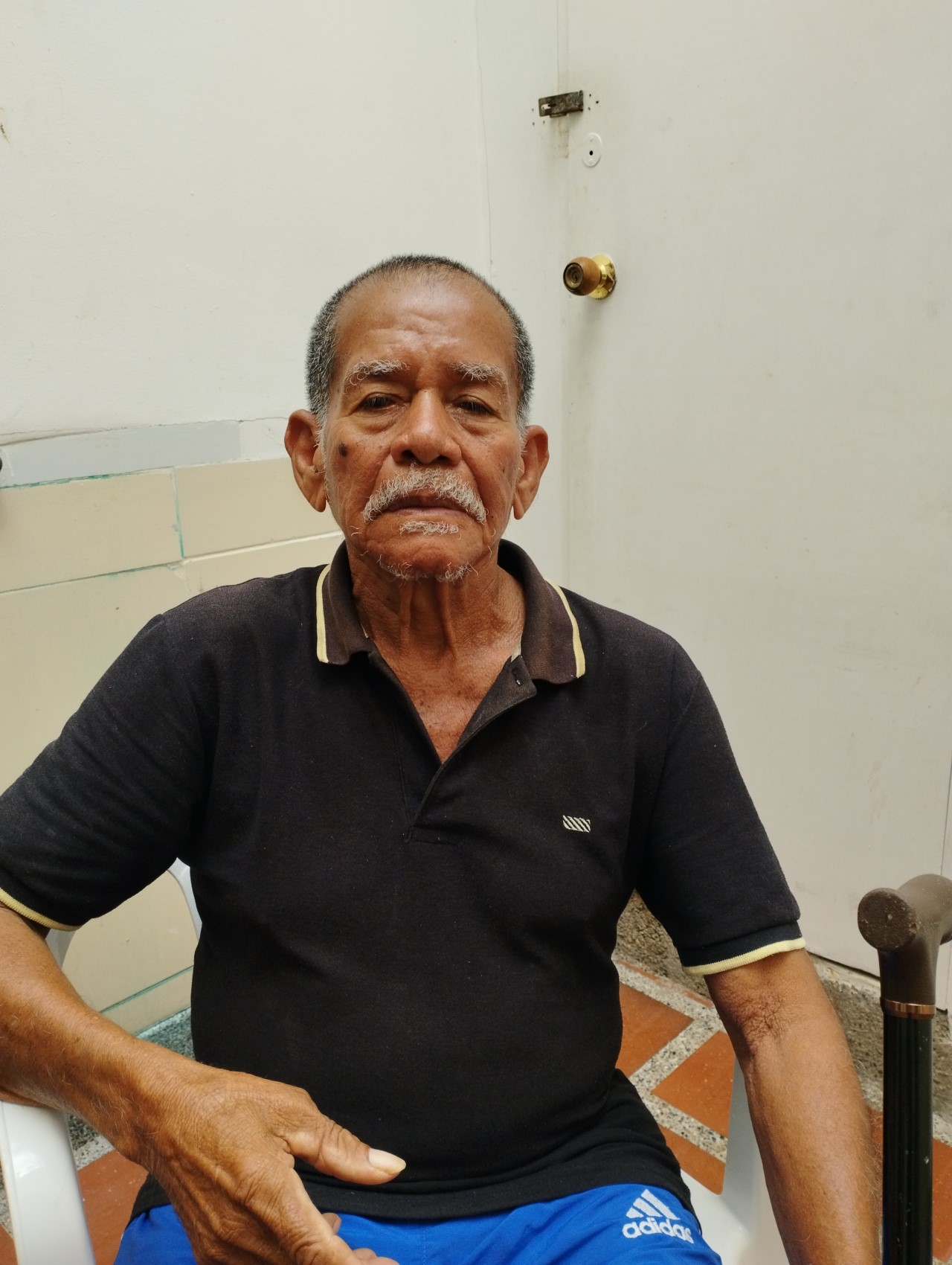 Este hombre que dice llamarse Pedro Julio Muentes, de 79 años, se encuentra en el albergue temporal de la Alcaldía de Medellín, busca a su familia.