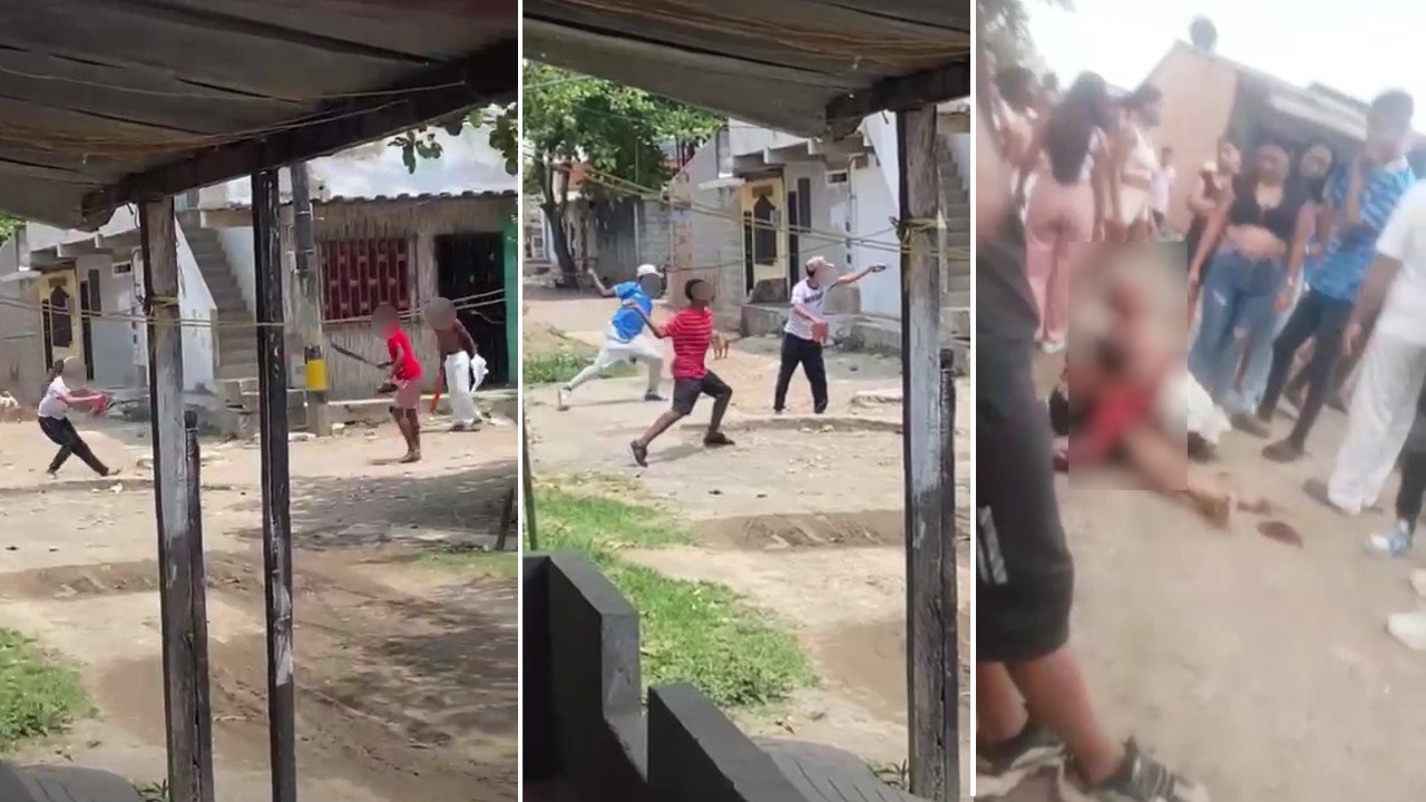 Varios ciudadanos colgaron las imágenes en las redes sociales en las que se ven a muchachos perseguirse con peligrosos machetes en las manos.