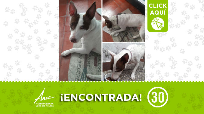 Esta peludita fue encontrada mientras deambulaba por el sector del estadio Atanasio Girardot. Si la reconoce o sabe de sus dueños, por fa no dude en comunicarse a este número: 3105157680.