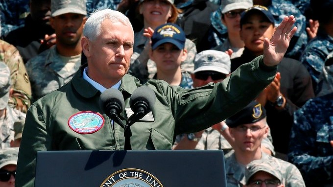 La nueva administración estadounidense “buscará siempre la paz, pero también mantendrá siempre el escudo en guardia y la espada preparada”, advirtió Pence, cuya gira asiática tiene lugar en un momento de máxima tensión en la península de Corea por las constantes pruebas armamentísticas de Pyongyang.