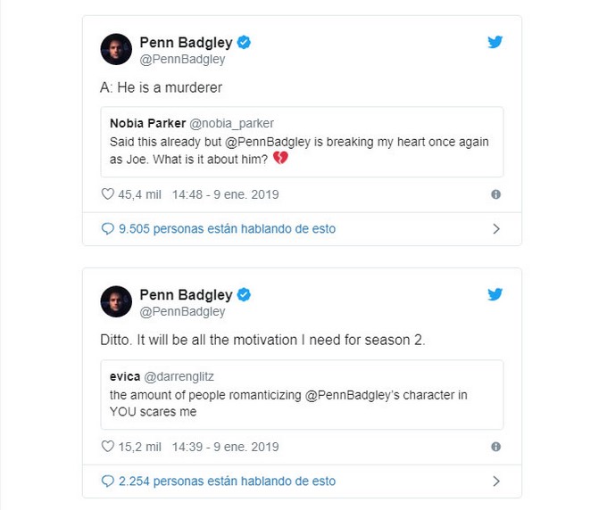Quien le da la vida a Joe es Penn Badgley, y ha manifestado en Twitter que está impactado por la cantidad de gente que ahora como “crush” tiene a su personaje.