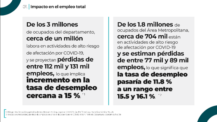 Por su parte, también representa un complejo panorama, pues dichas pérdidas económicas para las empresas podrían traer consigo un despido masivo de cerca de 112.000 empleados, aumentando el desempleo en un 15%.