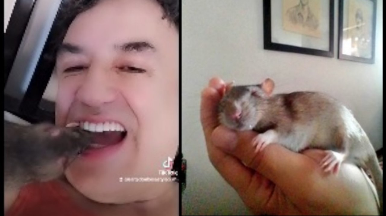 “Que belleza de animalito”, dice uno de los comentarios que le dejaron al presentador, quien deja ver como su mascota; una rata, le toca sus dientes, labios y hasta lo ‘besa’.