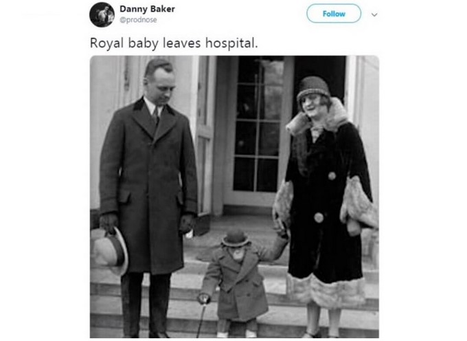 Según la captura de pantalla que se logró hacer de la supuesta publicación del presentador de radio, a través de Twitter habría compartido una imagen de dos personas que llevan a un chimpancé con traje y posteó ‘el bebé real deja el hospital’.