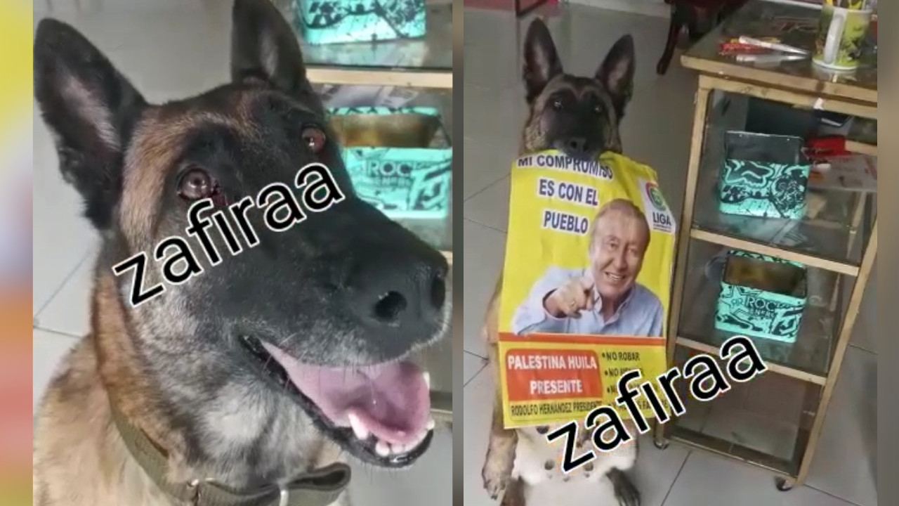 En la grabación, un hombre le pregunta a la perrita: ‘Zafira’ “¿Por qué quien hay que votar? ¿Por Petro?”, ella inmediatamente ladra tres veces, al parecer, en señal de desaprobación y de inmediato se dirige a una mesa de la que escoge un afiche de la campaña política de Rodolfo Hernández y se lo enseña por varios segundos a su dueño y a la cámara.
